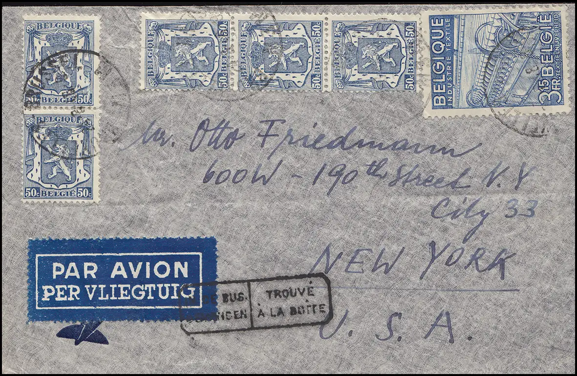 Belgien 812 Textilindustrie 3 Fr. MiF mit 422 Brief BRÜSSEL 24.8.48 in die USA