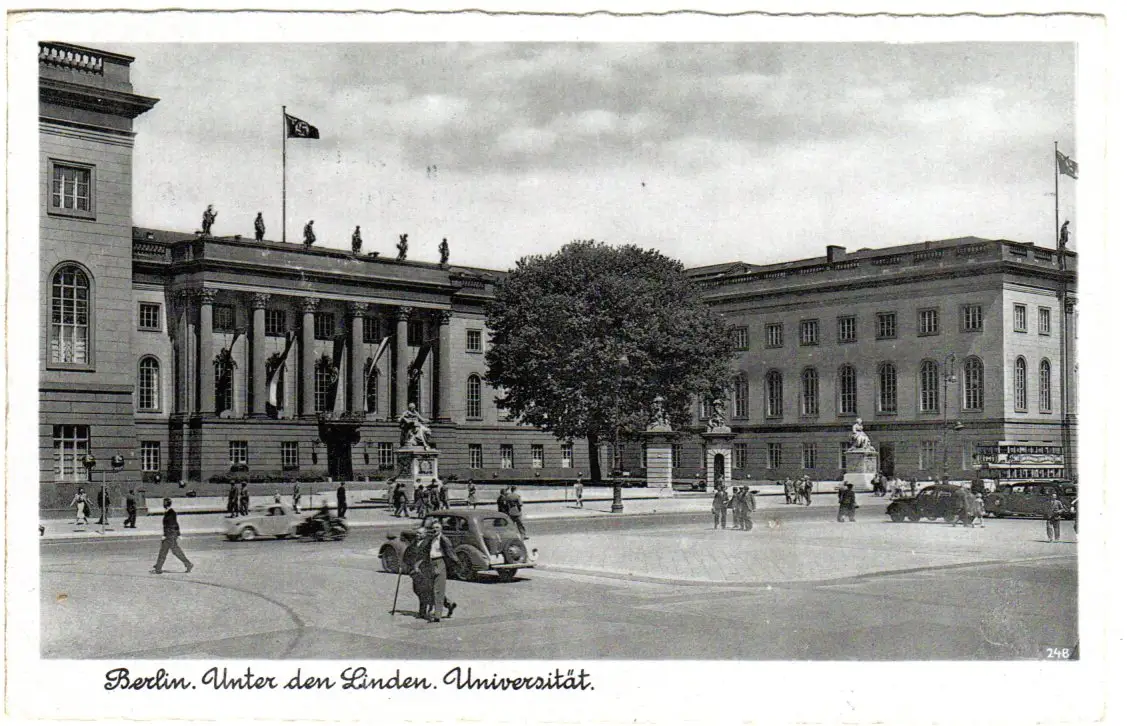 Belin Unter den Linden, Universität m. Oldtimern, 1959 gebr. sw-AK