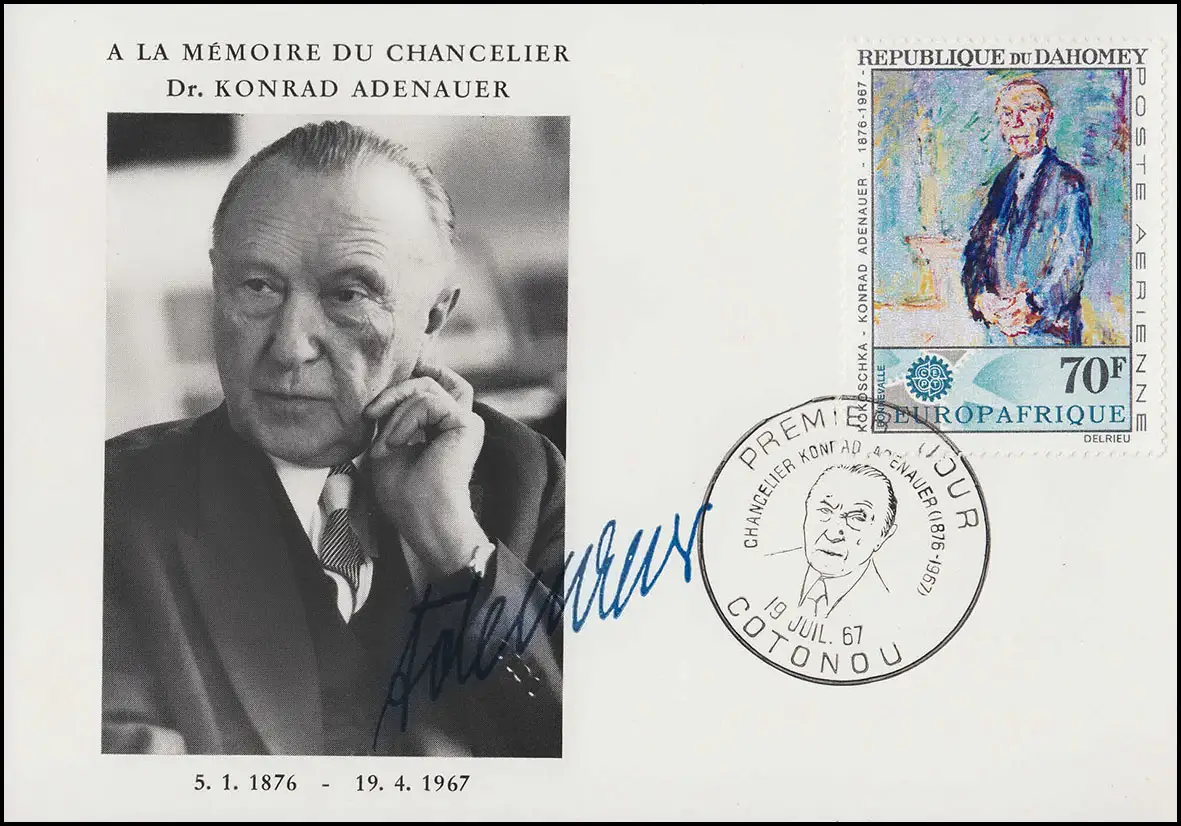 Benin / Republik Dahomey 318 Todestag von Adenauer 1967 Schmuck-FDC 19.7.67
