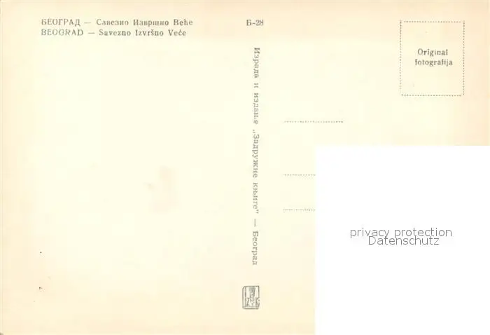 Beograd_Belgrad Savezno Izvrsno Vece Beograd Belgrad postalisch nicht gelaufen 1921-1965 Erhaltung siehe scans [WerneD78] WernPID7