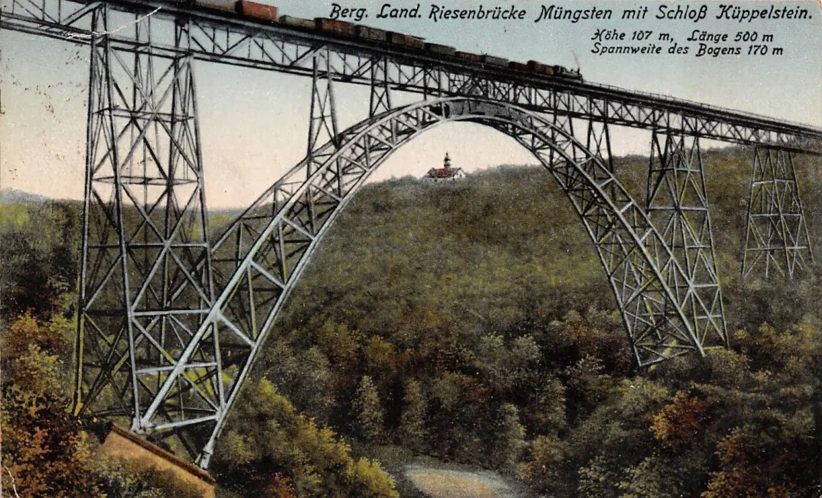 Berg. Land Riesenbrücke Müngsten mit Schloß Küppelstein Postkarte AK 1923