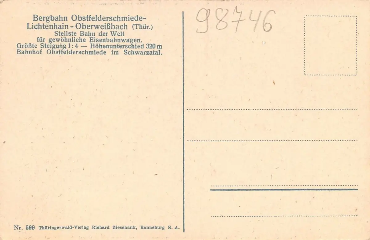 Bergbahn im Oberen Schwarzatal Thüringer Wald Thüringen Postkarte