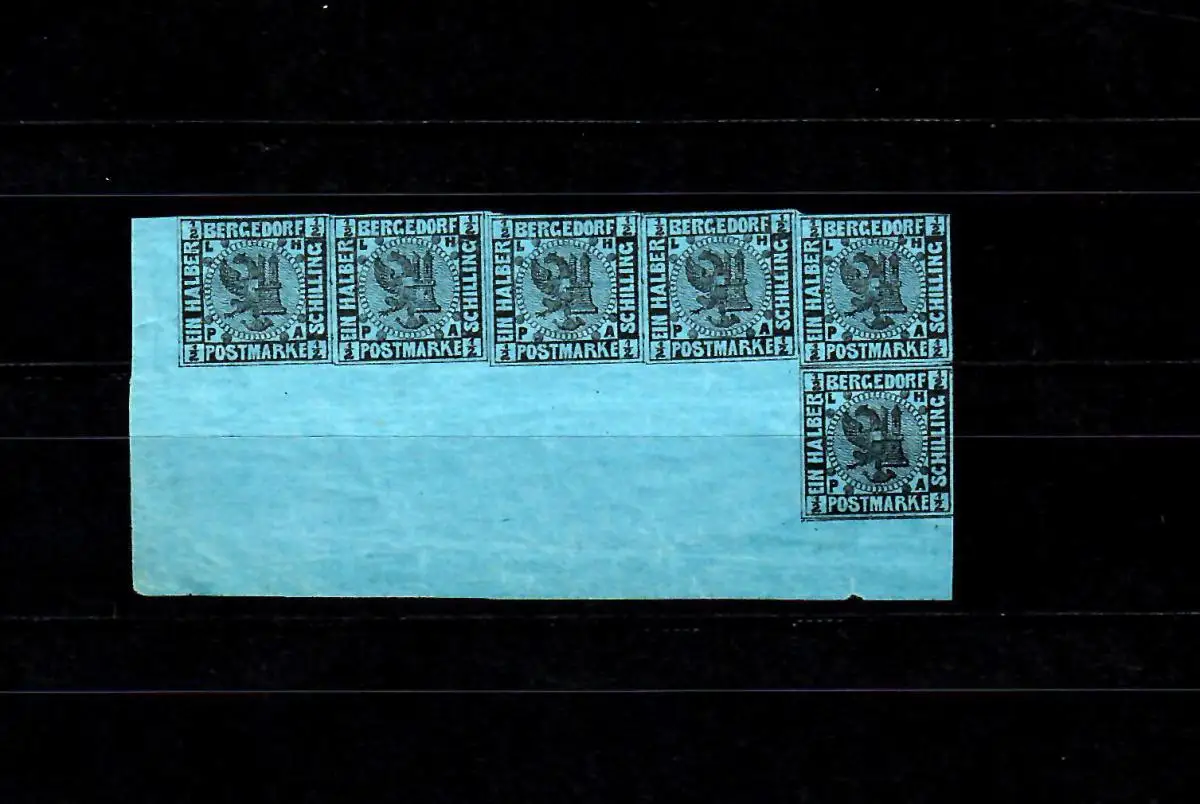 Bergedorf: MiNr. 1 L (4): 6er Block, postfrisch, **, Eckrand, 4x mit Leerfeld