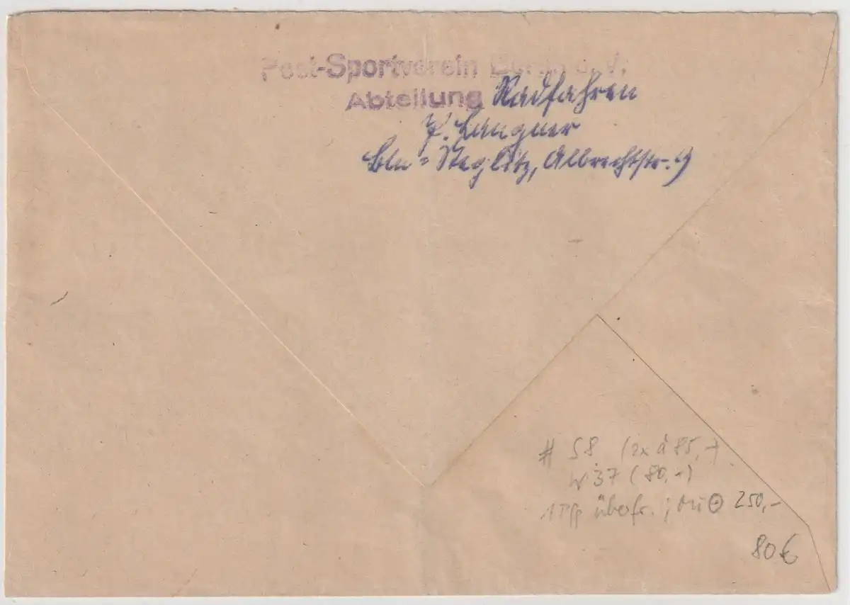 Der Umschlag hat einen senkrechten Mittelbug, ansonsten ist die Erhaltung einwandfrei. Der Brief ist mit 1 Pfg. überfrankiert. Lose gestempelt beträgt der Michelwert 250,00 €