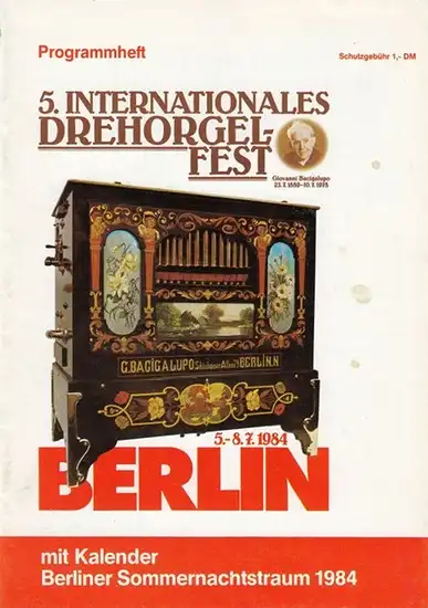 Berlin. - Drehorgelfest. - mit Grußworten von Eckard Lindemann, Kurt Niemuth: Programmheft: 5. Internationales Drehorgelfest, Berlin 1984. Mit Kalender Berliner Sommernachtstraum 1984.