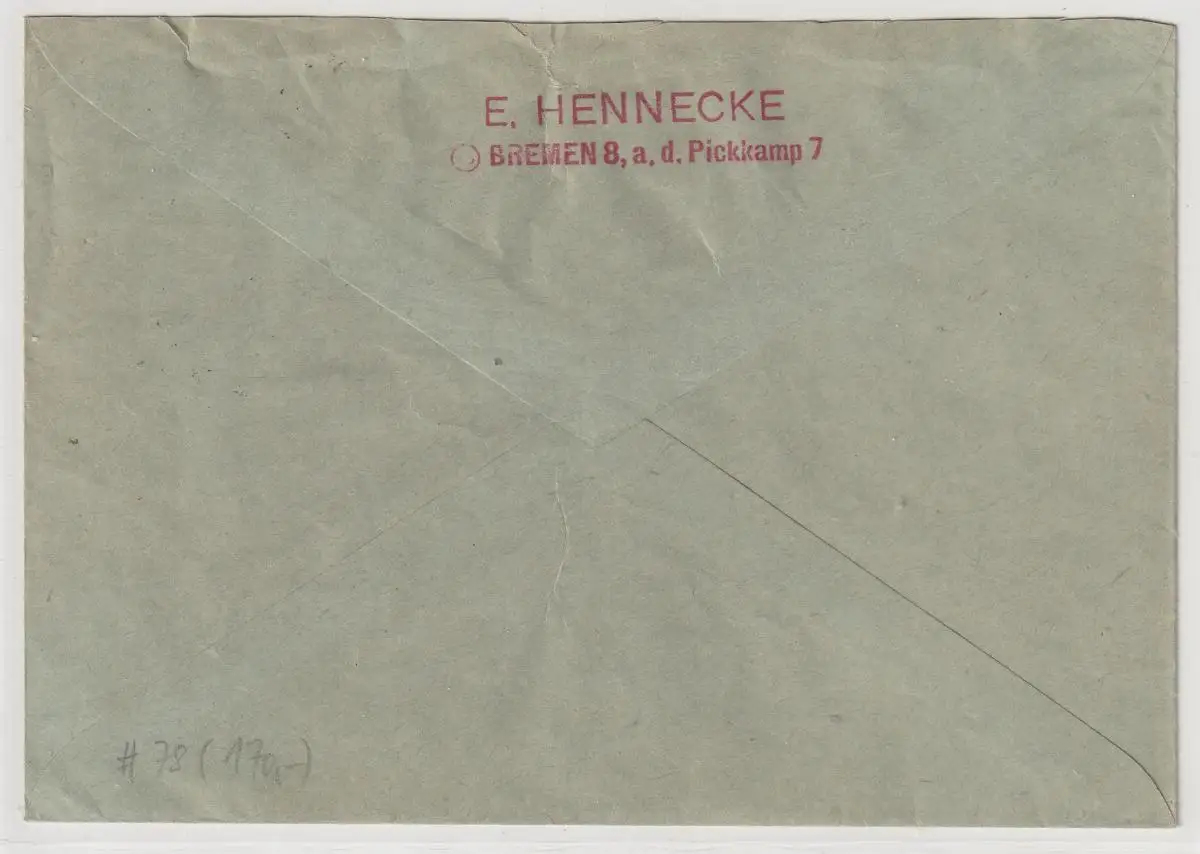 Gute Erhaltung, oben im Umschlag kleine reparierte Fehlstelle, portorichtig - die Saar galt noch als Ausland. Verwendung ab Bremen. Marke vom Oberrand. Michelwert 170,00 €.