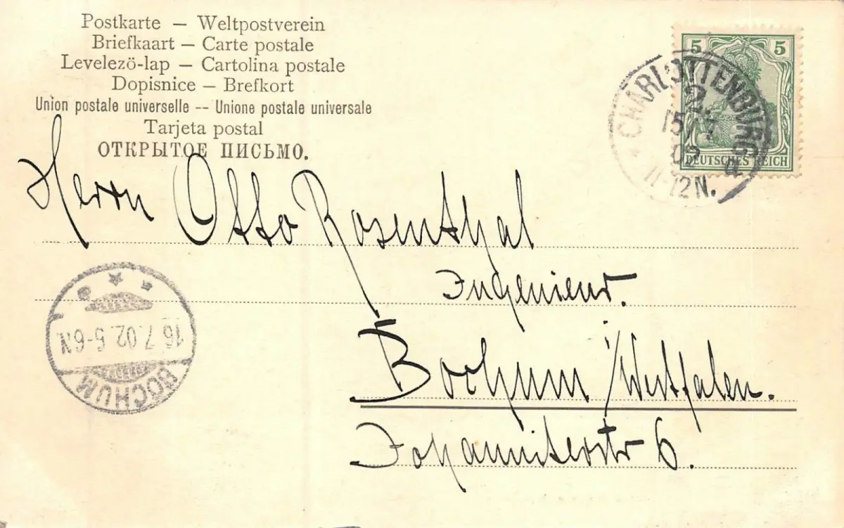 Rückseite: gelaufen 1902 von Charlottenburg nach Bochum