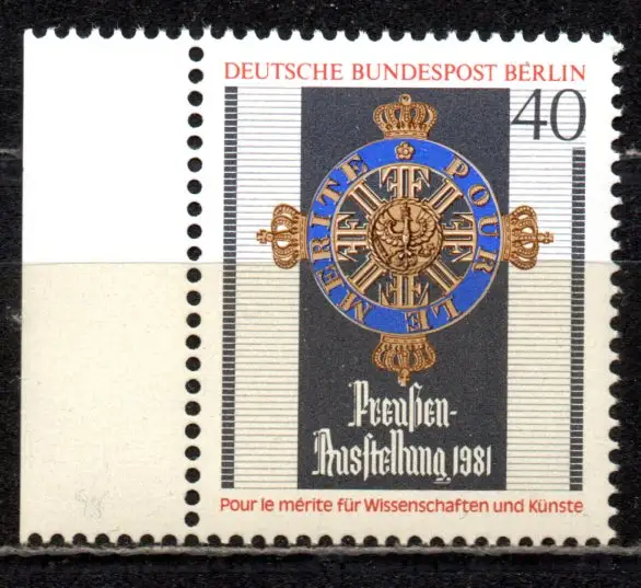 Berlin, Mi-Nr. 648 **, Rand links, Preußen-Ausstellung Berlin-Kreuzberg