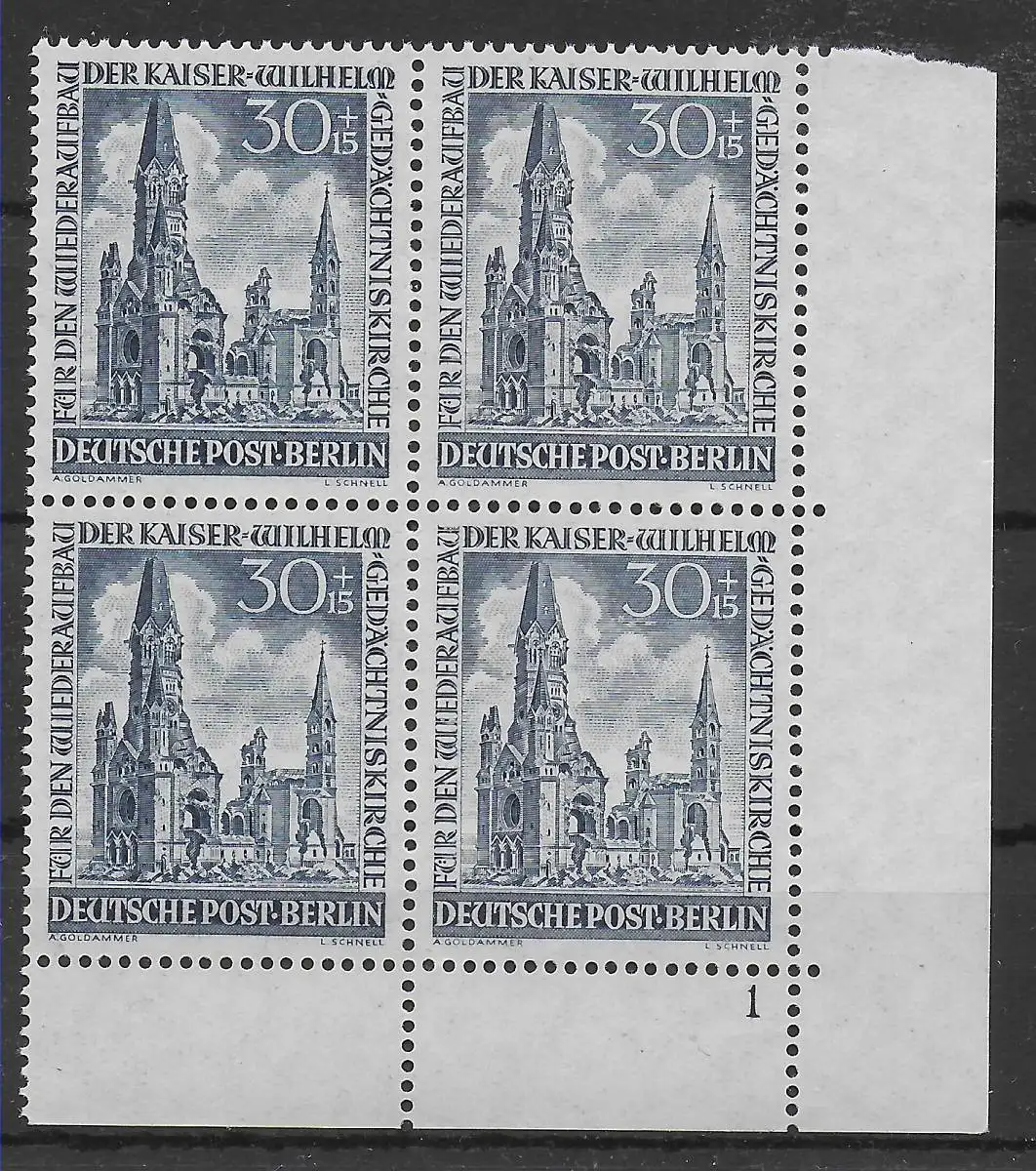 Berlin: MiNr. 109, postfrisch, **, VE4, Eckrand, Sektor Nr. 1