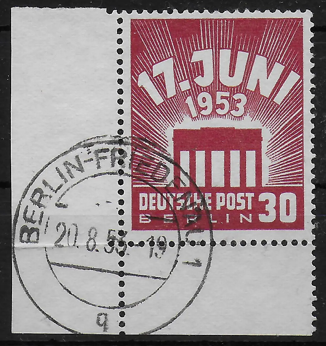 Berlin: MiNr. 111, Eckrand E3, vorgefaltet, 1953