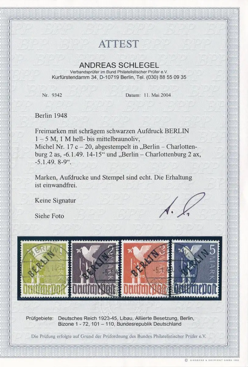 Berlin, MiNr. 17c-20, gestempelt, BPP Foto Attest