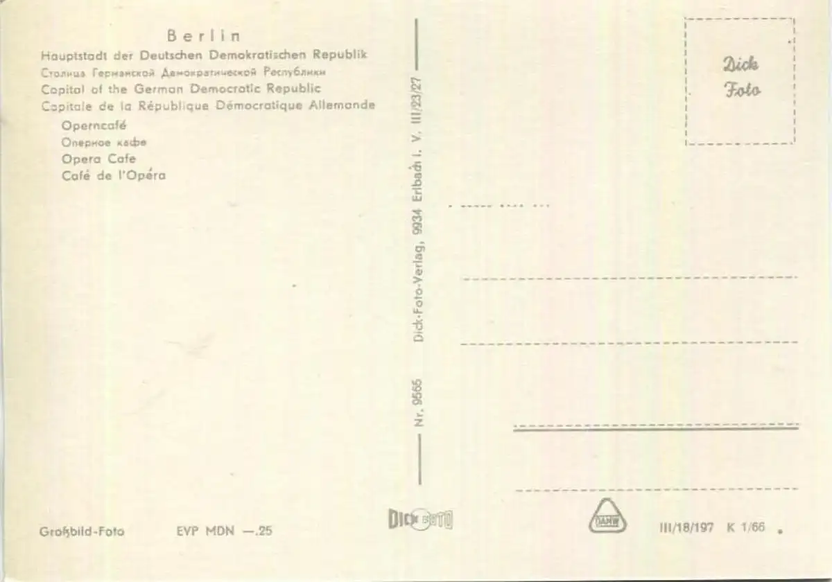 Berlin Mitte - Operncafe - Foto-Ansichtskarte Grossformat 60er Jahre - Verlag VEB Bild und Heimat Reichenbach