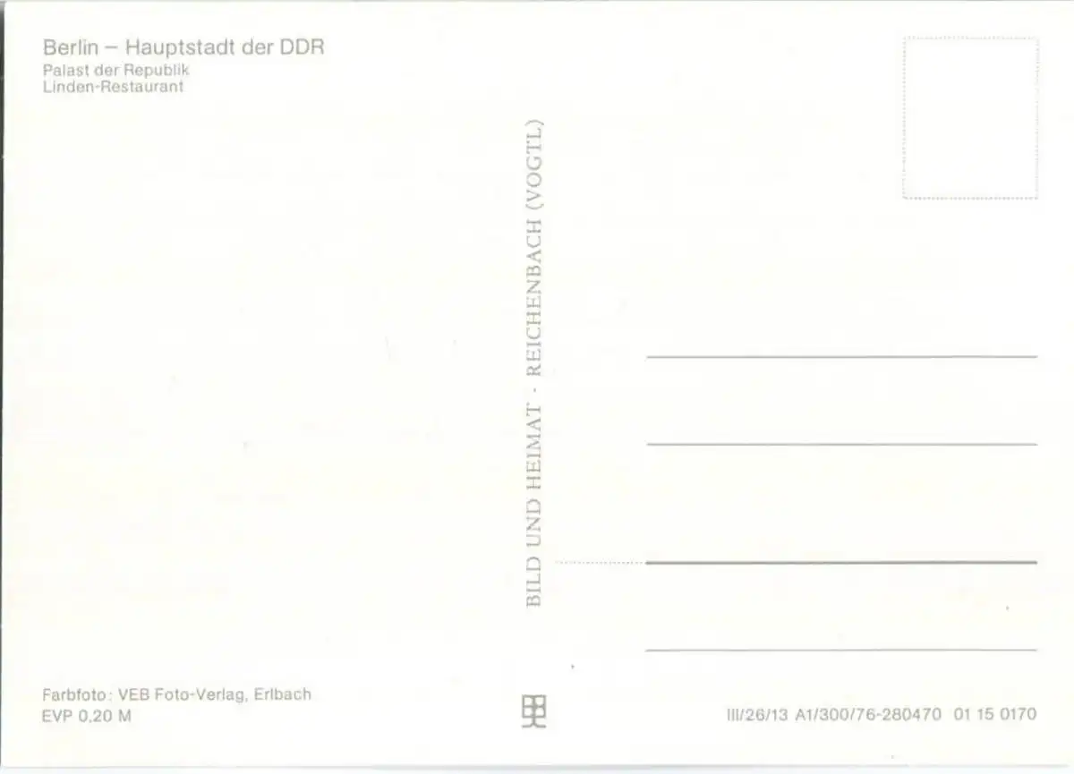 Berlin - Palast der Republik - Linden-Restaurant - Ansichtskarte Großformat - Verlag Bild und Heimat Reichenbach