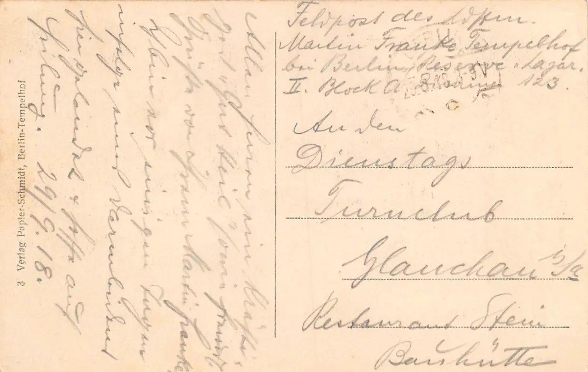 Berlin Tempelhof Reserve Kriegs Lazerett II Block A Postkarte 1918