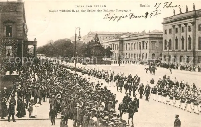 Berlin Unter den Linden Kaiser Wilhelm II Fahnen Compagnie Berlin