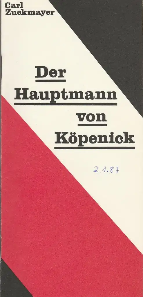 Titel: Programmheft Carl Zuckmayer DER HAUPTMANN VON KÖPENICK Premiere 5. Oktober 1986