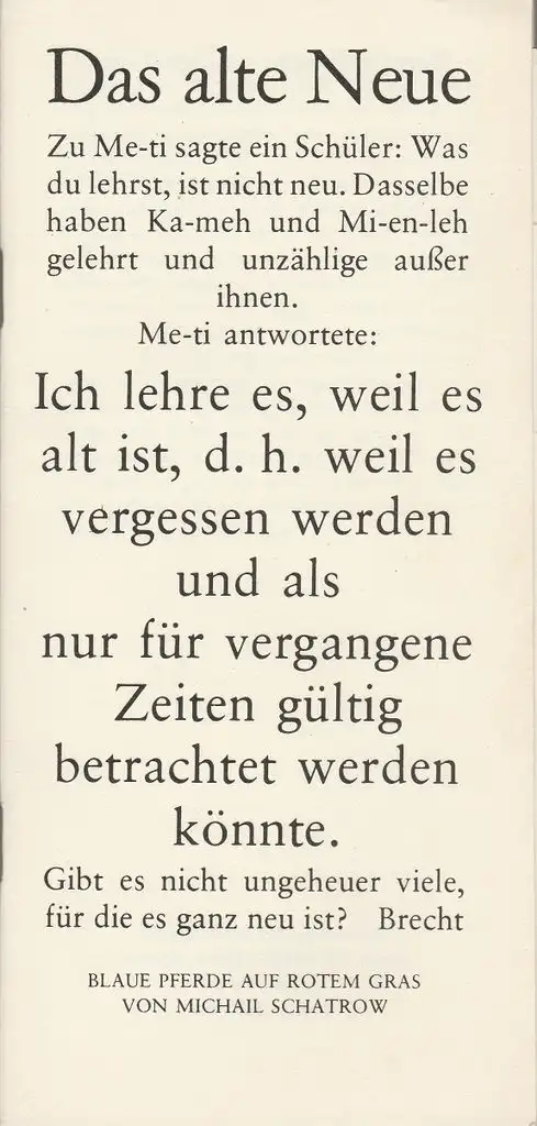Titel: Programmheft Michail Schatrow BLAUE PFERDE AUF ROTEM GRAS Premiere 3. Oktober 1980