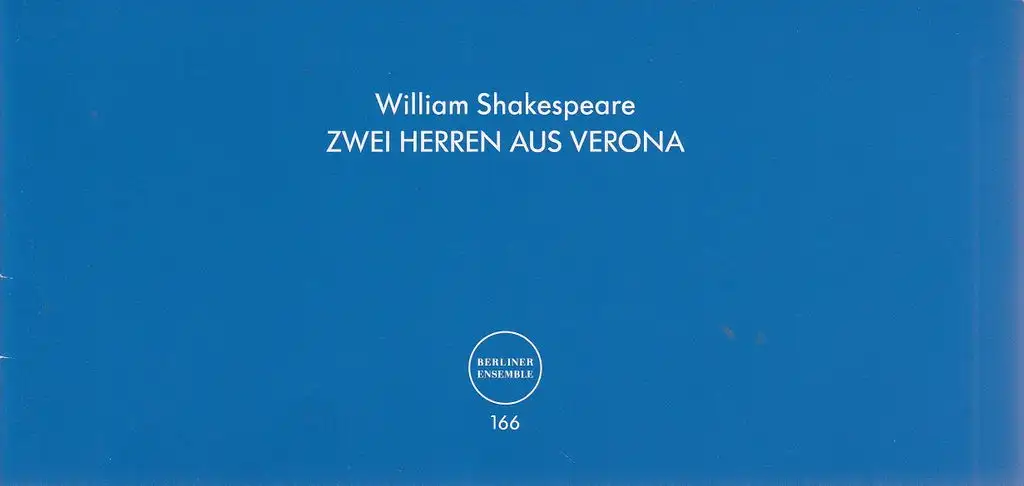 Berliner Ensemble Theater am Schiffbauerdamm, Anika Bardos, Jörg Lehmann, Marcus Lieberenz ( Probenfotos ): Programmheft William Shakespeare ZWEI HERREN AUS VERONA Premiere 6. Dezember 2014 Nr. 166.