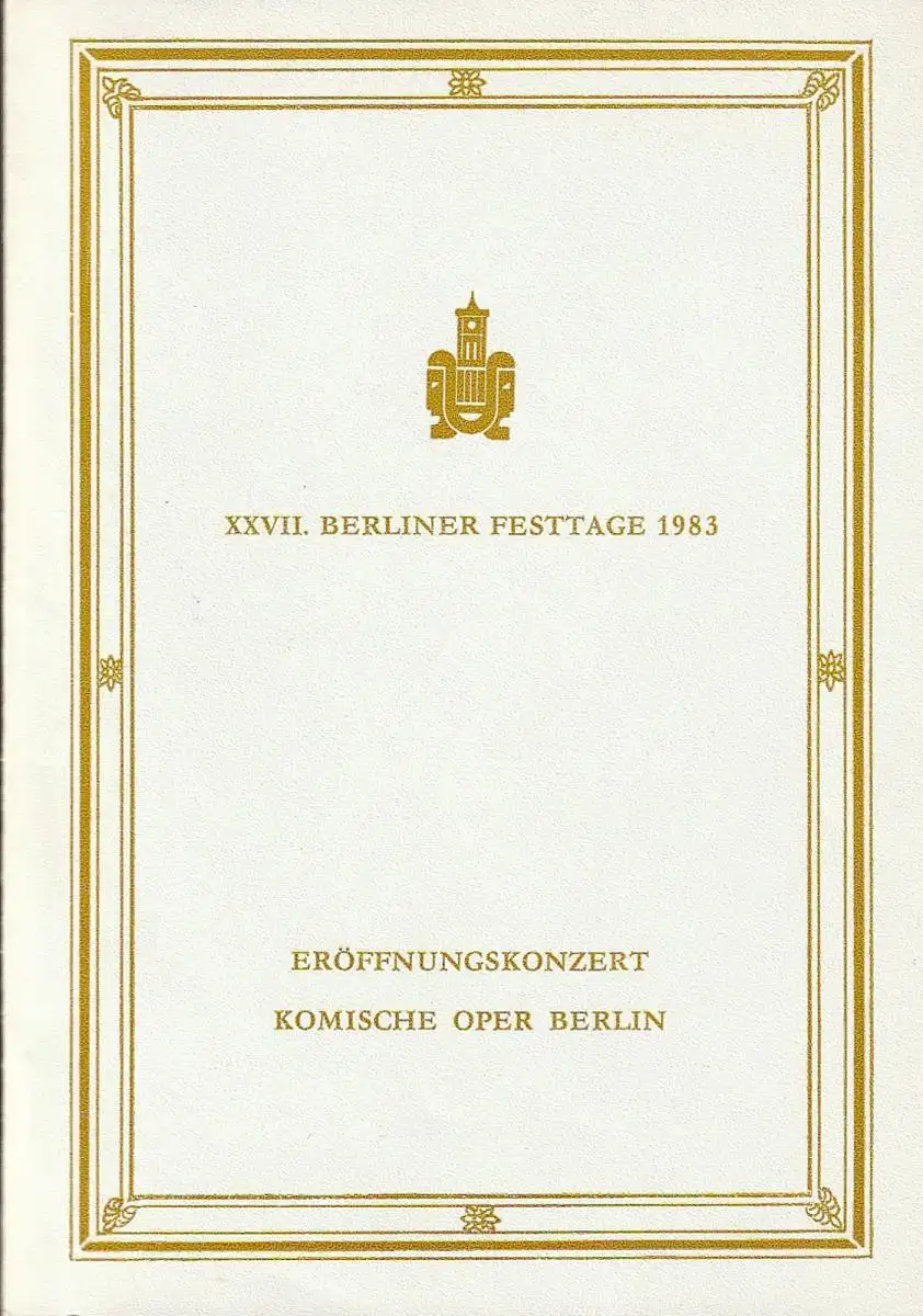 Berliner Festtage, Gerhard Müller: Programmheft KONZERT ZUR ERÖFFNUNG DER XXVII. BERLINER FESTTAGE 1983 30. September 1983 und 1. Oktober 1983 ( Wiederholung ) Komische Oper Berlin Spielzeit 1983 / 84.