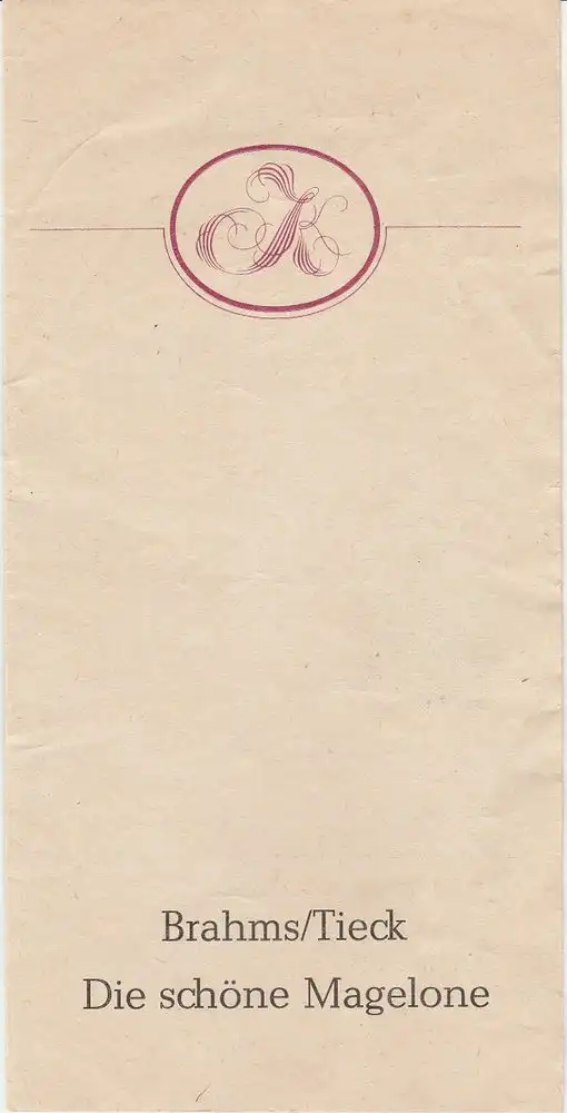 Gastspiel anläßlich der XXVII. Berliner Festtage des Theaters und der Musik. Ludwig Tieck: Aus dem Roman Die schöne Magelone. Johannes Brahms: Romanzen aus L. Tiecks Magelone, op. 33 - Theaterprogramm, Opernprogramm, Ballettprogramm, Musicalprogramm, Konzertprogramm, Theatermemorabilia, Programmhefte Sammlung, deutsche Theatergeschichte.