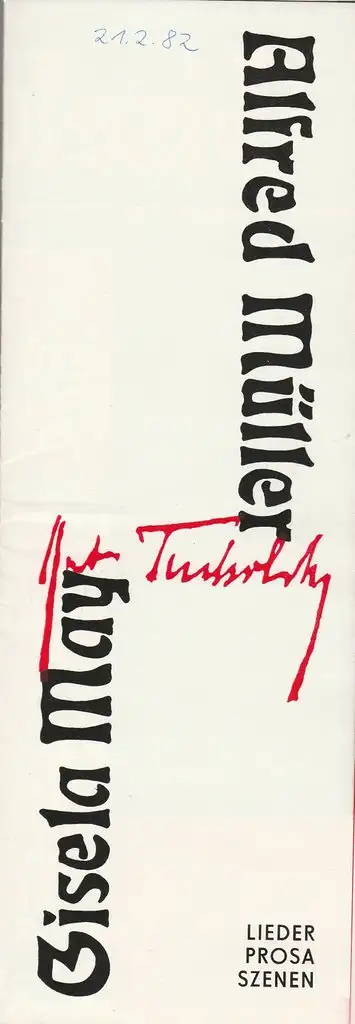 Berliner Festtage, Peter F. Greulich, Fernsehfunk der DDR: Programmheft Gisela May - Alfred Müller DER MENSCH HAT 2 BEINE Gastspiel 20. und 21. Februar 1982 im Maxim Gorki Theater Programmplakat.