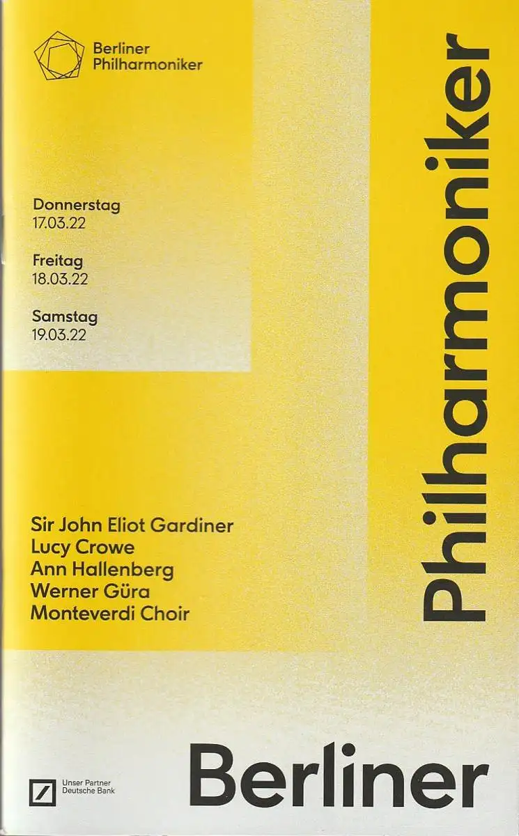 Titel: Programmheft BERLINER PHILHARMONIKER SIR JOHN ELIOT GARDINER 17. bis 19. März 2022 Philharmonie Großer Saal Saison 2021 / 22