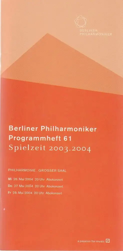 Titel: Programmheft BERLINER PHILHARMONIKER 26. Mai 2004 Philharmonie Grosser Saal Spielzeit 2003 / 2004 Programmheft 61