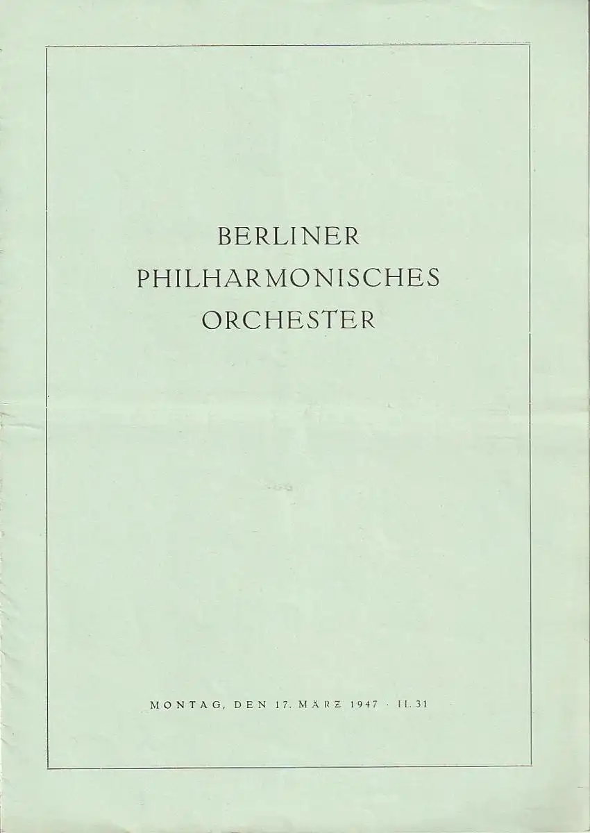 Berliner Philharmonisches Orchester: Programmheft BERLINER PHILHARMONISCHES ORCHESTER SERGIU CELIBIDACHE 17. März 1947 TITANIA-PALAST STEGLITZ.