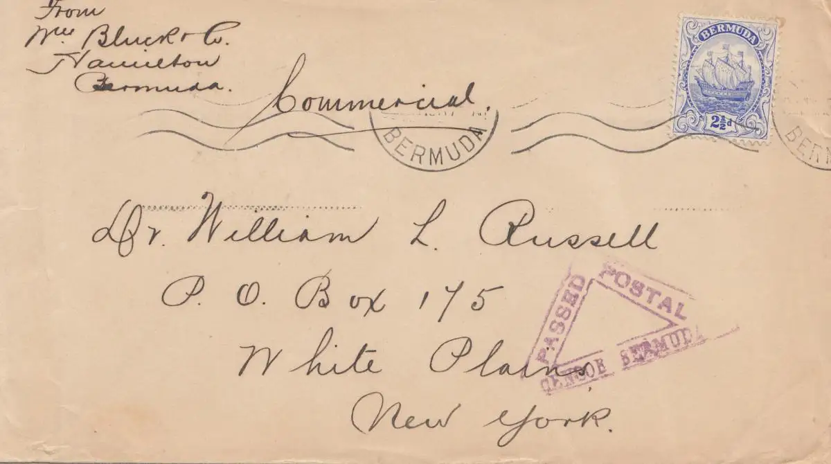 Bermuda: letter to New York, censor passed