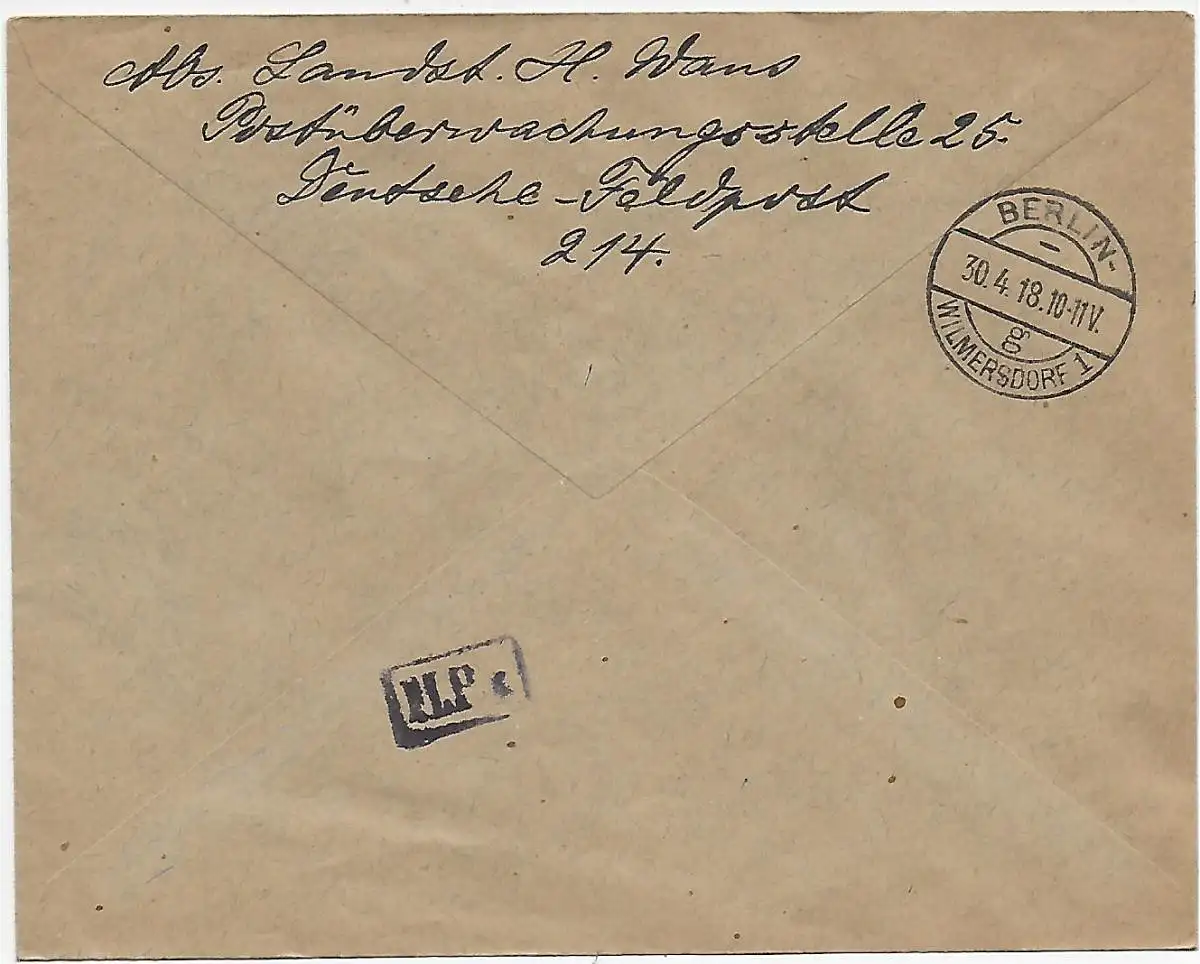 Für mehr Informationen siehe Scan: Absender: Postüberwachungsstelle 25 Deutsche Feldpost 214