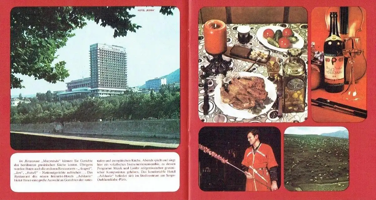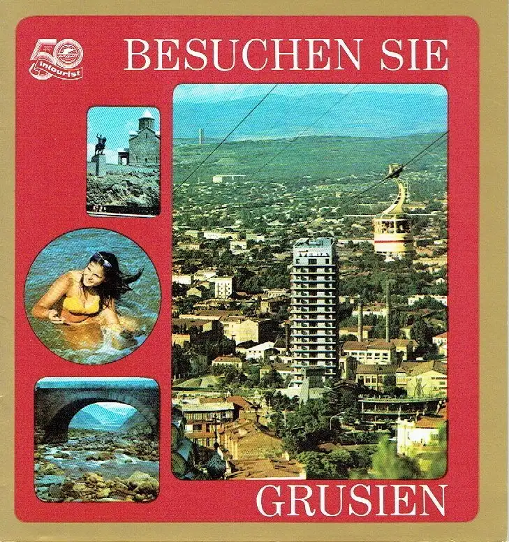 sehr guter Zustand, geringe Gebrauchs- und Alterungsspuren, Werbe-Prospekt mit Beschreibung und Informationen zu Kaukasus, Georgien und Tbilissi (Grusinische SSR), Papier, ca. 18,5 x 20, 16 Seiten mit 25 Bildern