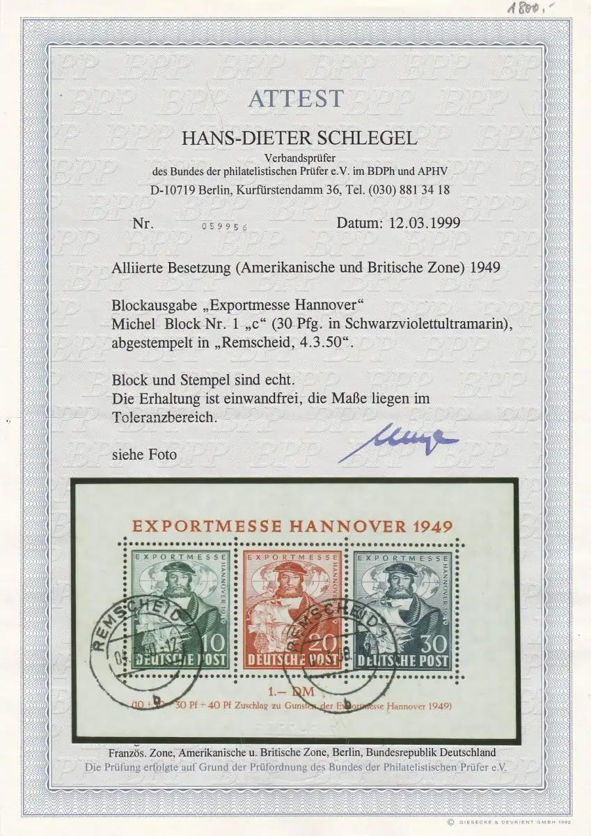 BiZone: Block 1c gestempelt, Remscheidt, mit BPP Attest
