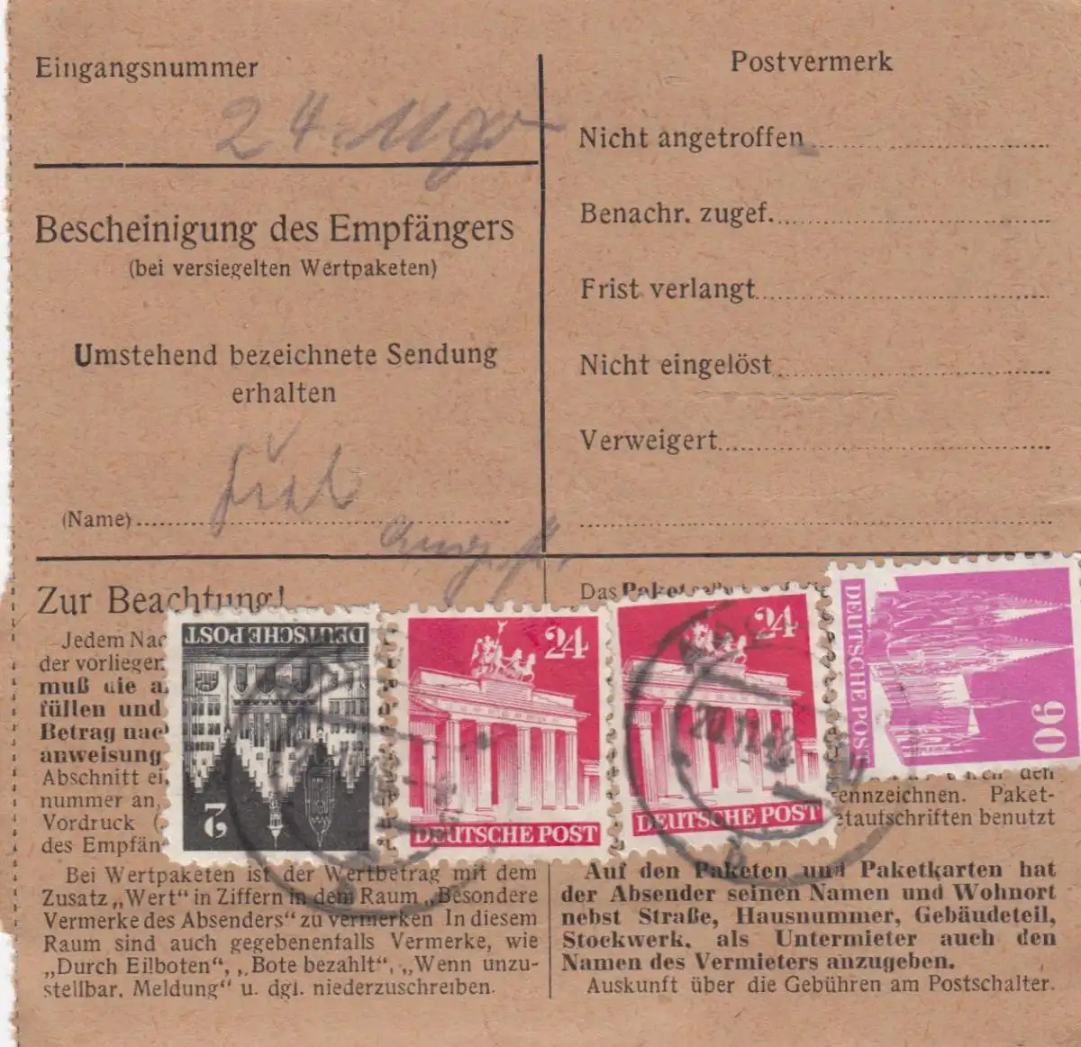 BiZone Paketkarte 1948: Aachen nach München, Nachnahme