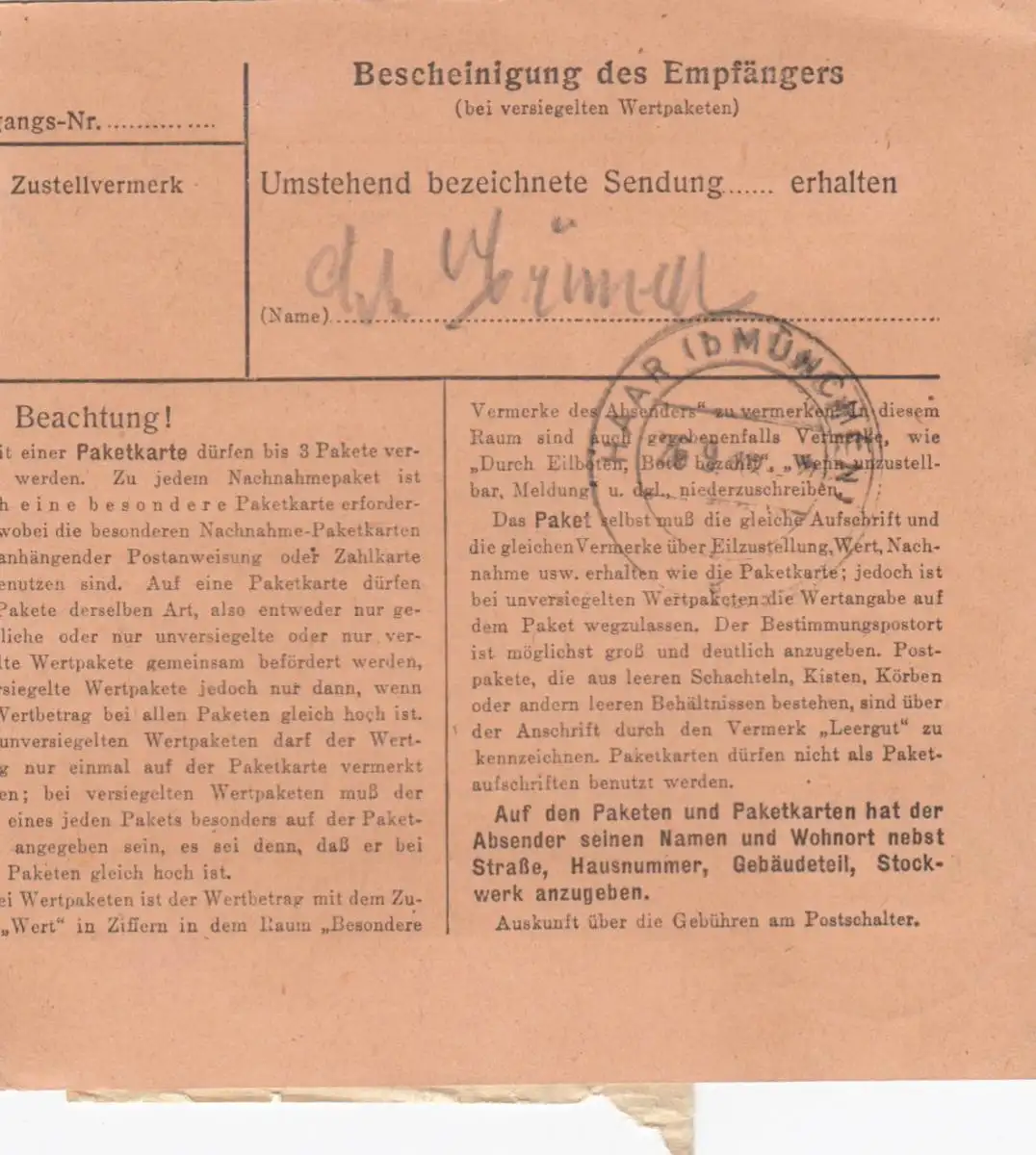 BiZone Paketkarte 1948: Füssen nach Haar, Klinik