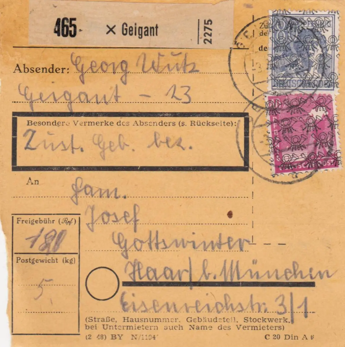Brief/Karte oder Marken nur im Scan leicht beschnitten. Marken sind vollständig,
