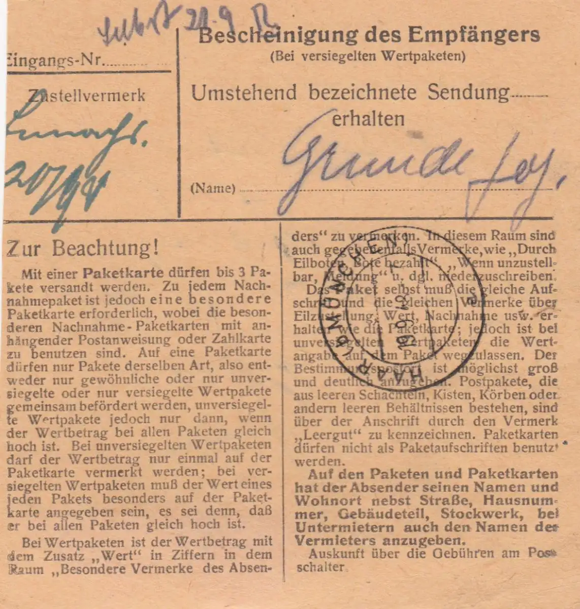 BiZone Paketkarte 1948: Kempten nach Post Haar bei München