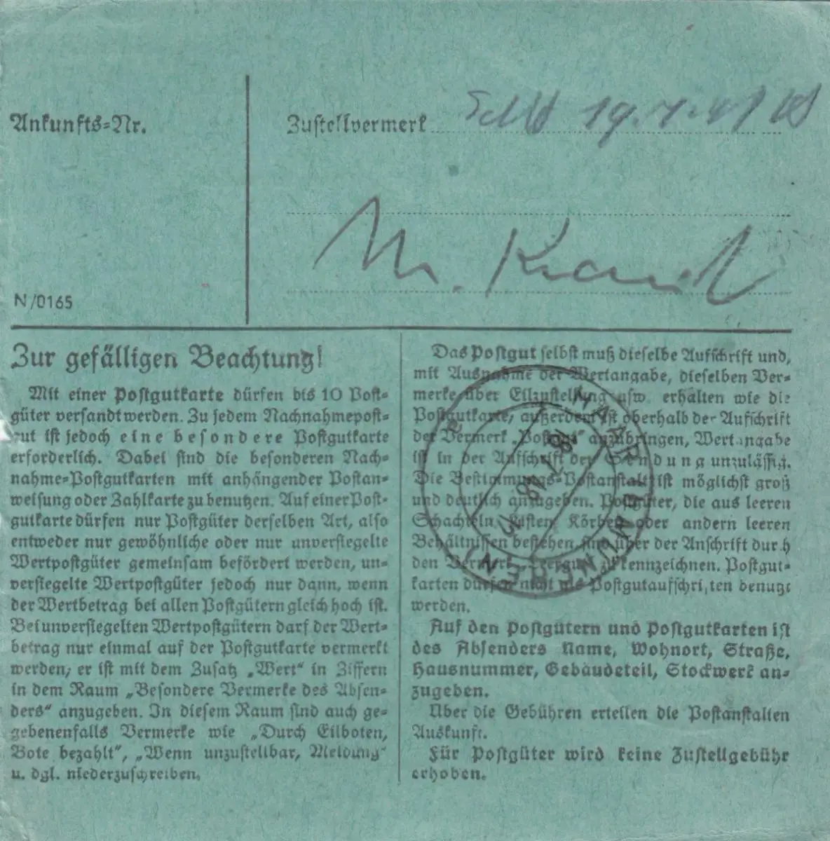 BiZone Paketkarte 1948: München n. Haar, Wertkarte, Selbstbucher, bes. Formular