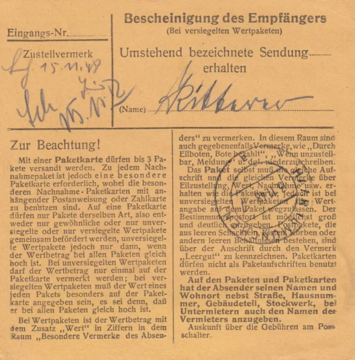 BiZone Paketkarte 1948: Rain nach Haar bei München