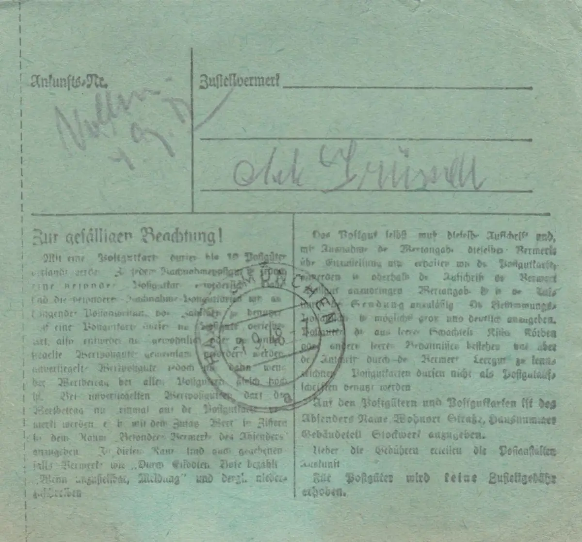 BiZone Paketkarte 1948: Schleißheim nach Eglfing, Heilanst., bes. Formular