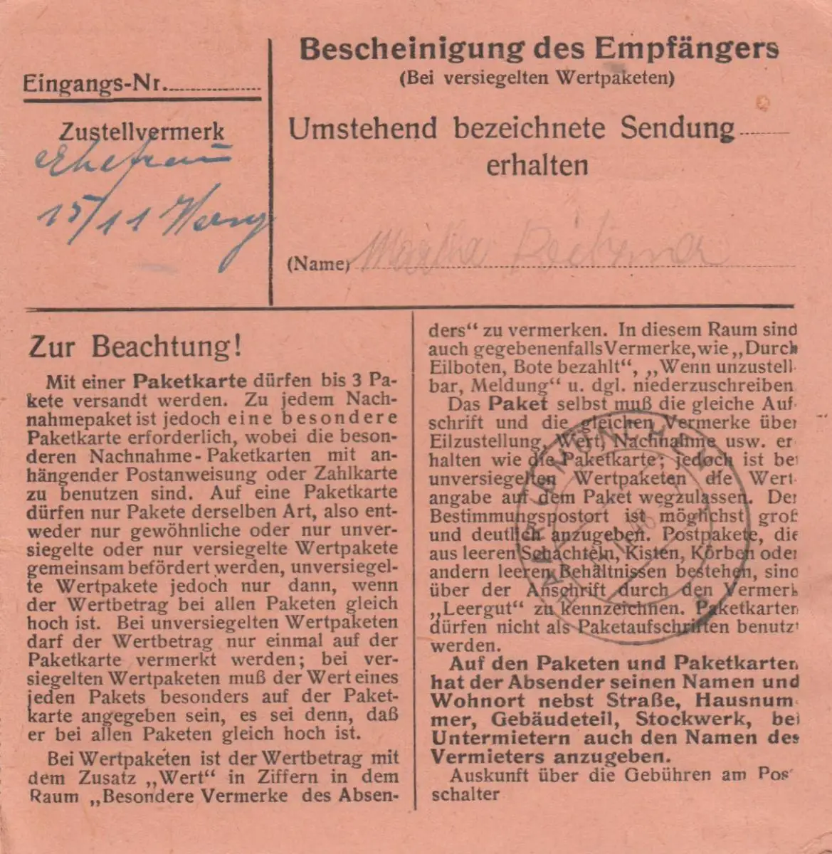 BiZone Paketkarte 1948: Tengling Fridolfing nach Haar