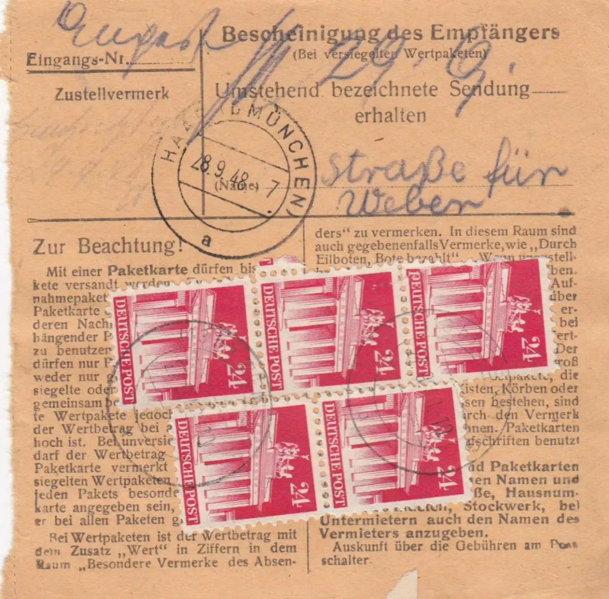 Brief/Karte oder Marken nur im Scan leicht beschnitten. Marken sind vollständig,