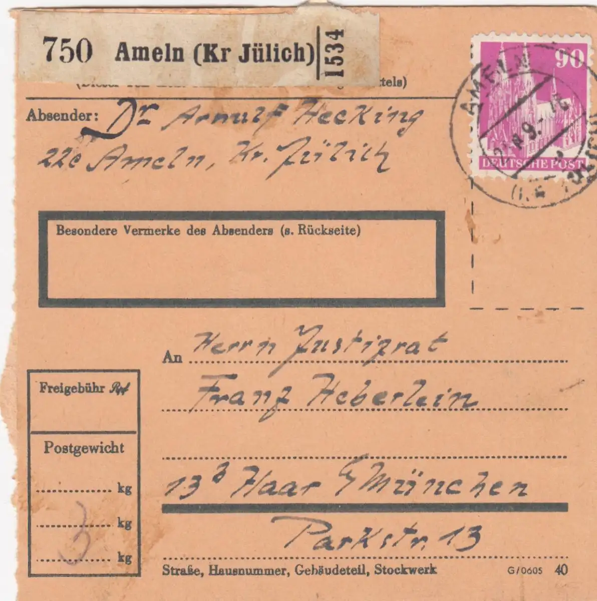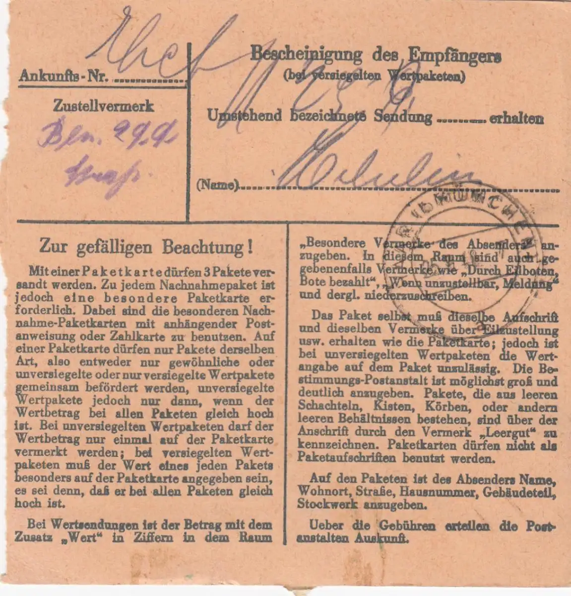 BiZone Paketkarte 1949: Ameln nach Haar München