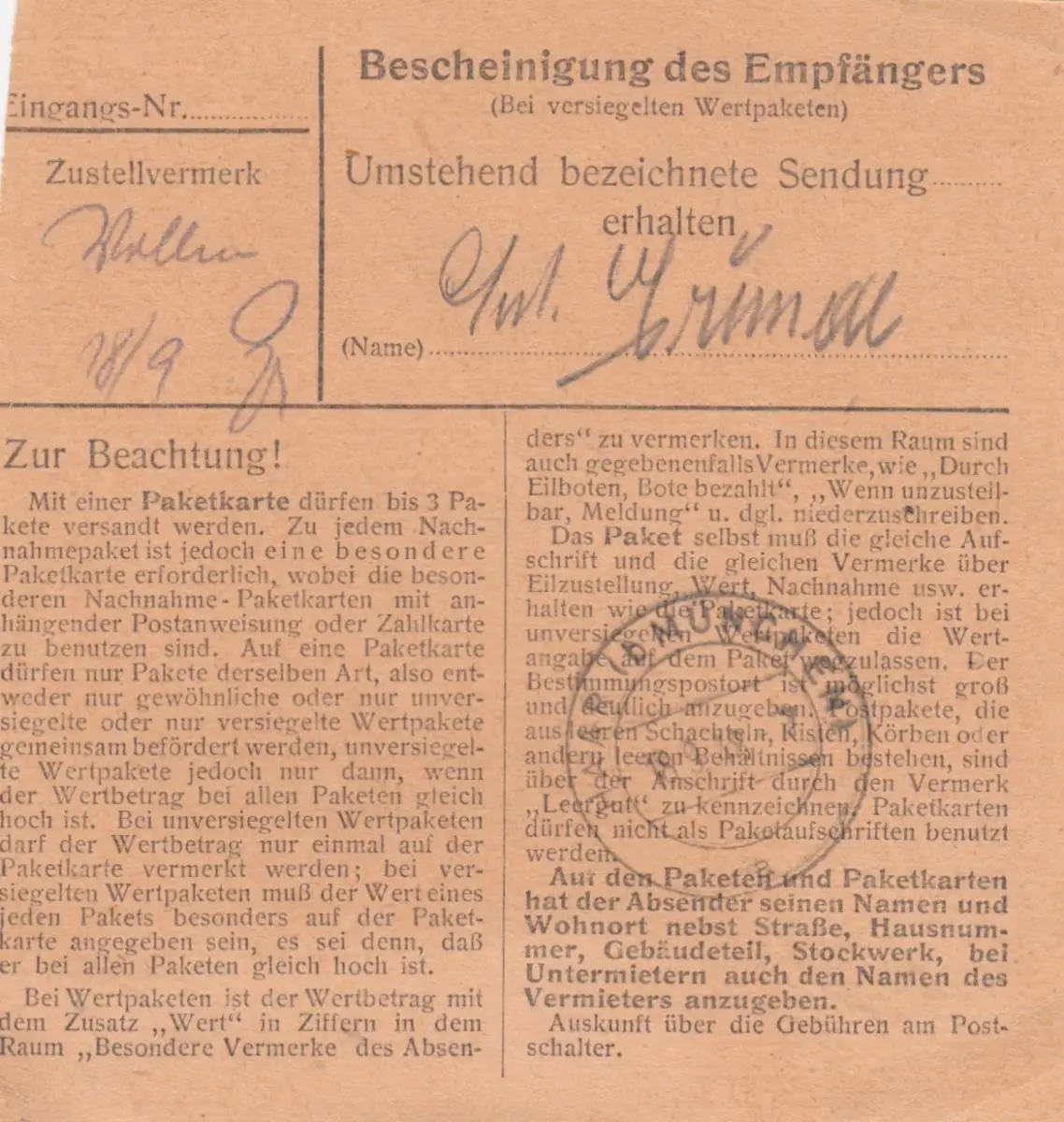 Brief/Karte oder Marken nur im Scan leicht beschnitten. Marken sind vollständig,