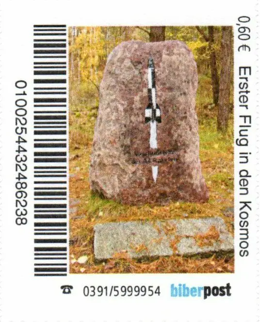 • MichSeite Biberpost: 03.10.2017, "75 Jahren 1. Start in den Kosmos", Satz, postfrisch Beschreibung \nAusgabeland: Bundesrepublik Deutschland \nPostdienstleister: Biberpost, Magdeburg \nAusgabeanlass: personalisierte Briefmarkenausgabe "75 Jahren 1. Start in den Kosmos" Katalognummer: - Ausgabedatum: 03.10.2017 Nominale: Satz (1 Wert) zu 0,60 EUR \nTyp: Typ VI (neues Logo) \nErhaltung: selbstklebend, zähnungsartig gestanzt, postfrisch \nHinweis: -
