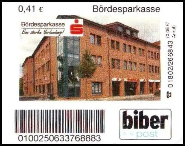 Biberpost: "Bördesparkasse", Wert zu 0,41 EUR, Typ V, postfrisch