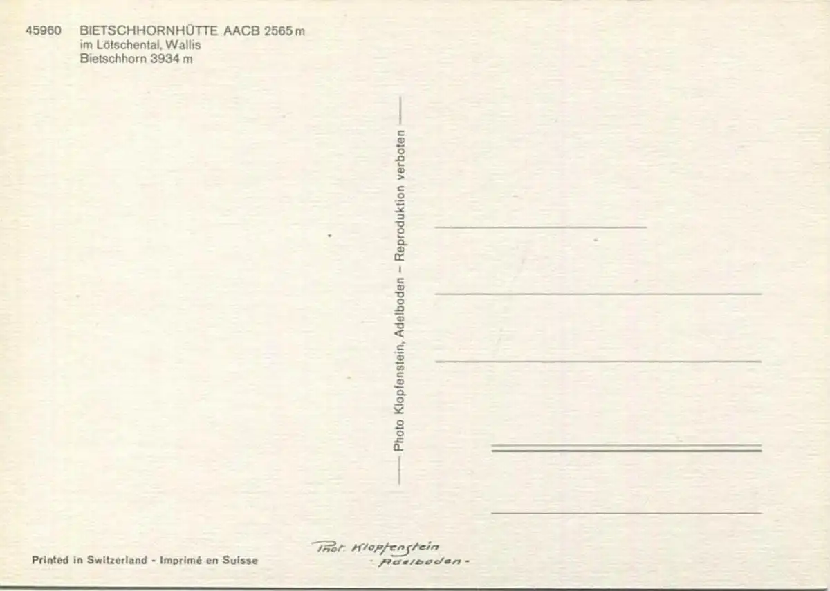Bietschhornhütte im Lötschental - AK-Grossformat - Verlag Photo Klopfenstein Adelboden