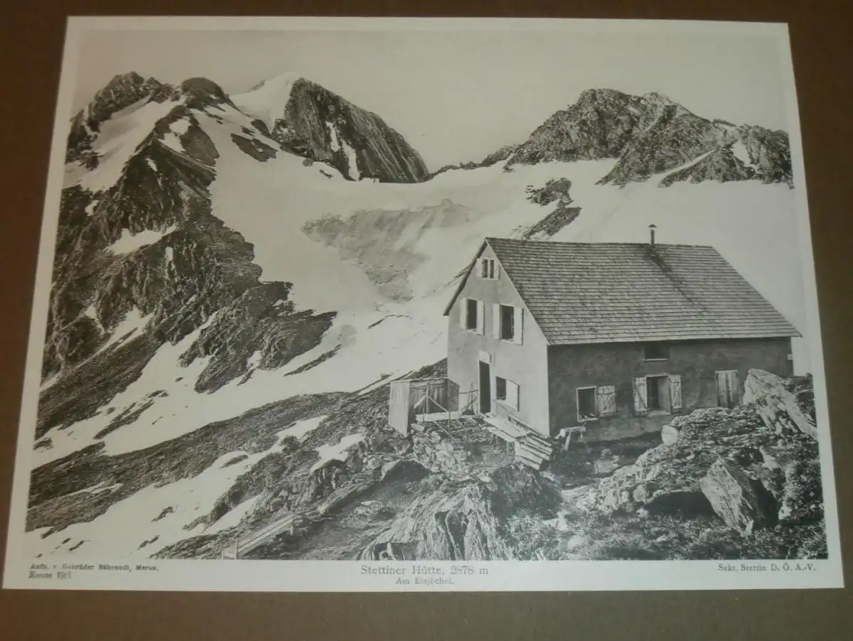 Bild / Aufnahme - Stettiner Hütte 2875 m , Stettin , ca. 1930 , auf Pappe , Hütte , Am Eisjöchel , ca. 330x230 mm !!!