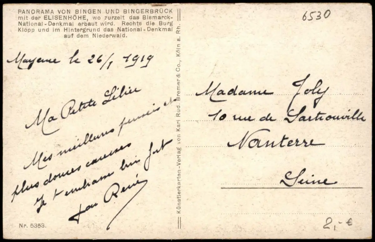 Bingen Rhein Bingerbrück 1919 Feldpost Feldpoststation No. 8 der 6. Armee WK1