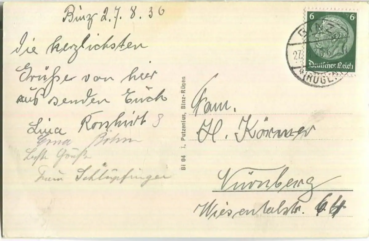 Binz auf Rügen - Verlag I. Putzenius Binz (G0175) gel. 1936