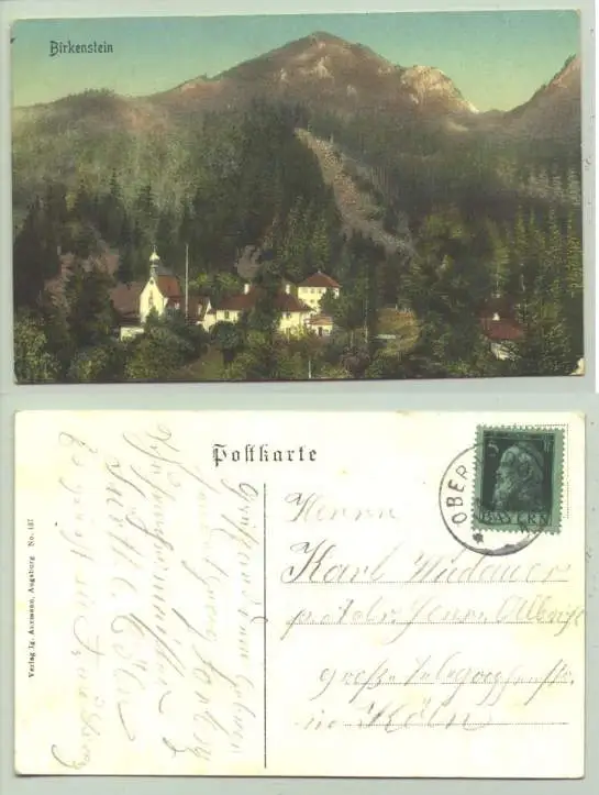 Artikelbeschreibung u. Zustand : Siehe Scan. Weitere Infos : Ansichtskarte. Birkenstein / Oberstdorf. PLZ-Bereich pauschal 87561. Postalisch gelaufen 1913